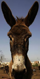 Thursday, April 30, 2009 Donkey 'Homicide' Bombs Latest Taliban Tactic A senior British Army officer and six other military personnel survived an attack when a tethered donkey laden with explosives was detonated as their armored vehicle passed in southern Afghanistan. The huge explosion showered the soldier standing on “top cover” out of the Mastiff’s turret with donkey entrails and blood, and the sight was so gruesome that the rest of those in the vehicle thought he had been mortally wounded in the blast, south of Garmsir in southern Helmand province. ”I’m all right, I’m all right,” he shouted, according to one of the officers at the incident who spoke to The Times, giving the first account of the incident. ”We’d spotted the donkey tethered to a tree as we were on our way down south to monitor an operation that had been going on that day, but thought nothing of it. There are donkeys around everywhere,” the officer said. Nothing happened when they first passed, but as the patrol returned to the British battle group headquarters at Forward Operating Base (FOB) Delhi, explosives hidden in buckets slung from the donkey’s saddle were detonated. “I was asleep because you can feel quite nauseous travelling in a Mastiff and was woken by the explosion,” the officer said. “When I saw the top cover guy covered in blood, I tried to get to him with emergency medical kit. “He said he was all right but I told him he had been badly injured. When we realized what had happened it wasn’t long before the first donkey jokes started to come out — ‘drop the dead donkey’ was one, and ‘pain in the ass’ another.” The explosion damaged three of the wheels of the Mastiff and caused severe hearing problems for the Territorial Army soldier riding aloft. The stench of donkey remains lingered for weeks inside the vehicle. ”We were really lucky, especially the top cover TA soldier. The explosion seemed to go upwards and over the top but there were nails packed into the explosives, so it was a miracle there were no injuries. We reckon the two buckets could hold about 20 kilos of explosives,” the officer said. Troops in Afghanistan have been attacked by a boy with a wheelbarrow full of explosives and a bicycle with a bomb attached, but the explosion south of Garmsir in southern Helmand province is thought to be the first using tethered livestock. Posted by Women Against Shariah at Thursday, April 30, 2009 |